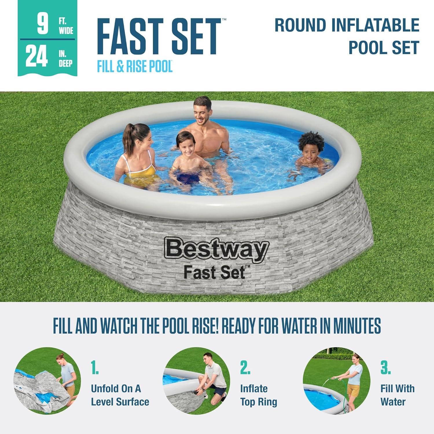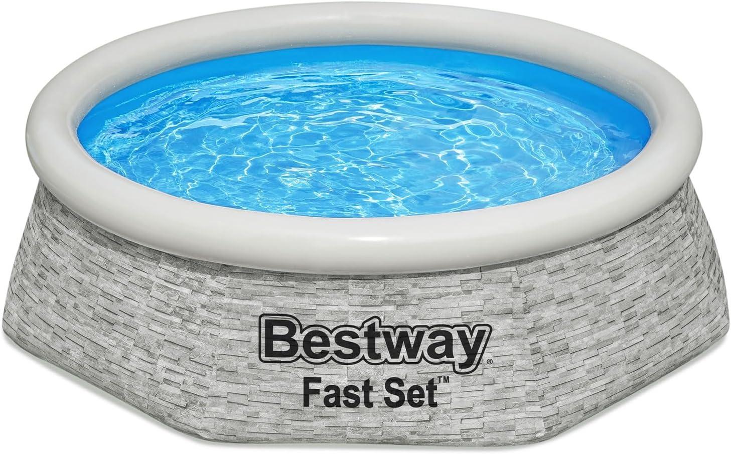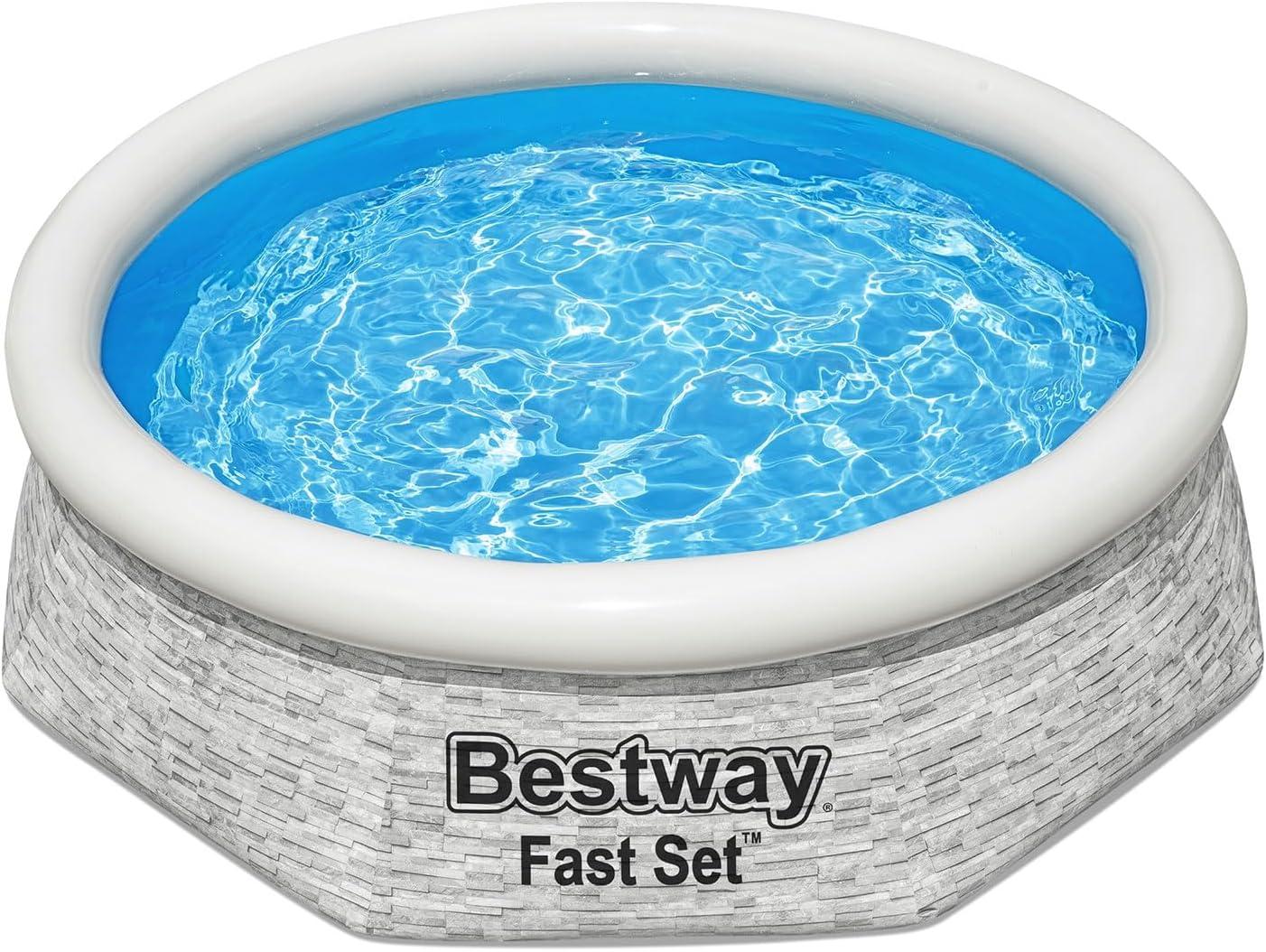Don’t miss out on our limited-time offer: buy Bestway Fast Set 12′ x 30" Round Inflatable Above Ground Swimming Pool Set, Stacked Stone Exterior Outdoor Family Pool with Filter Pump, Gray(8ft. x 24in.), get {accessory} 50% off!
