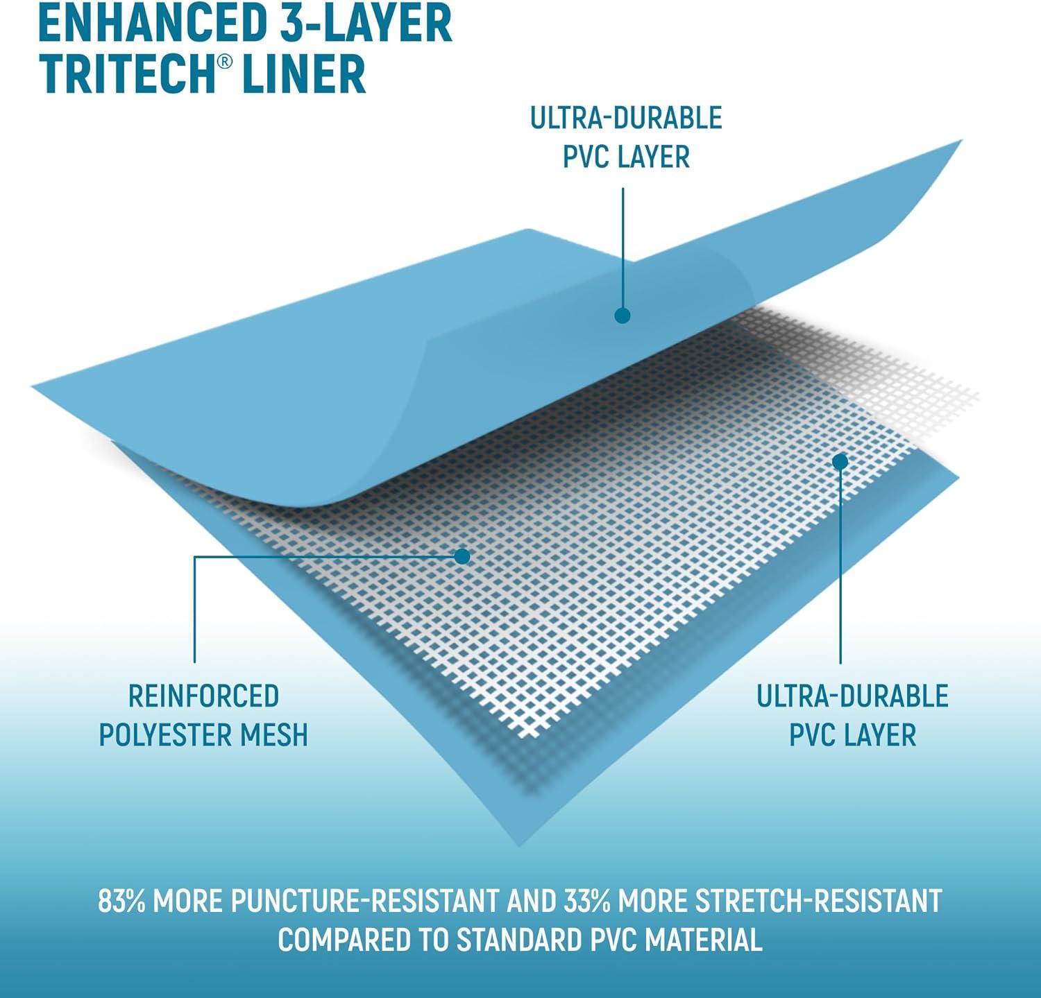 DuraPlus enhanced 3-layer liner is 15% more tear resistant, 33% more stretch resistant, and 83% more puncture resistant than standard PVC