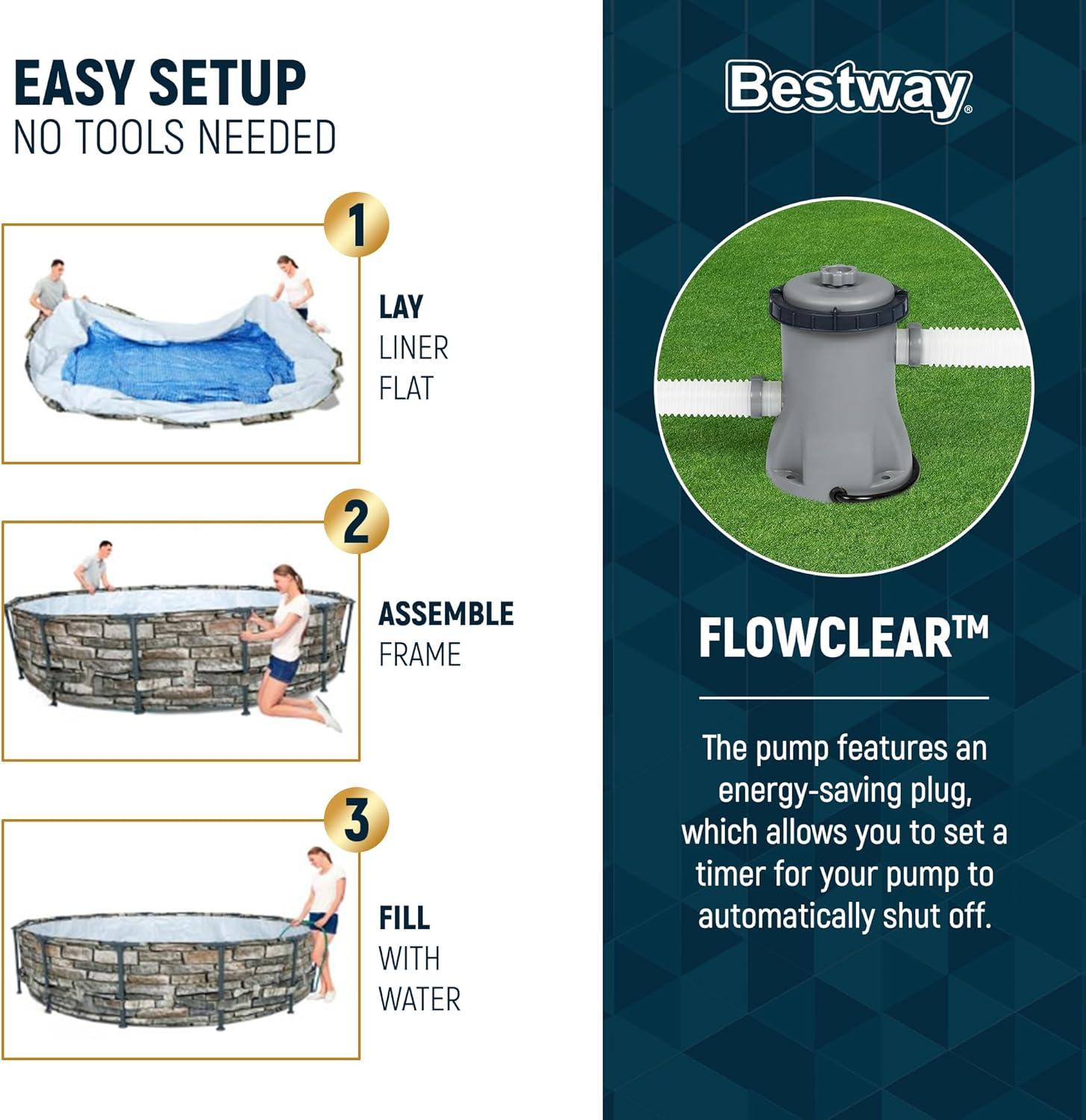 Designed for quick and easy assembly and takedown process without the need for tools or accessories so you'll be enjoying the crystal-clear water in your new pool in no time