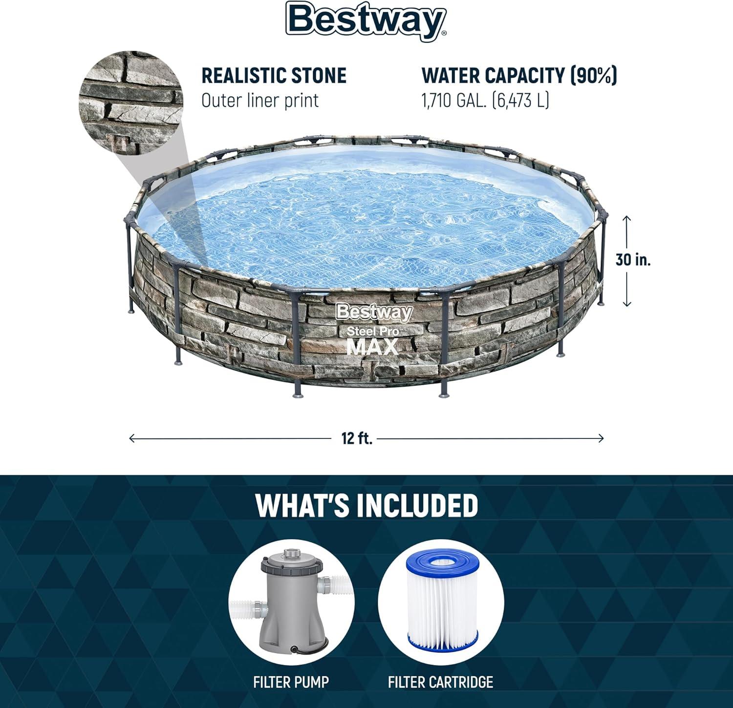 Enjoy a 12-foot by 30-inch framed pool providing ample space for family and friends of all ages to cool off and have a blast this summer